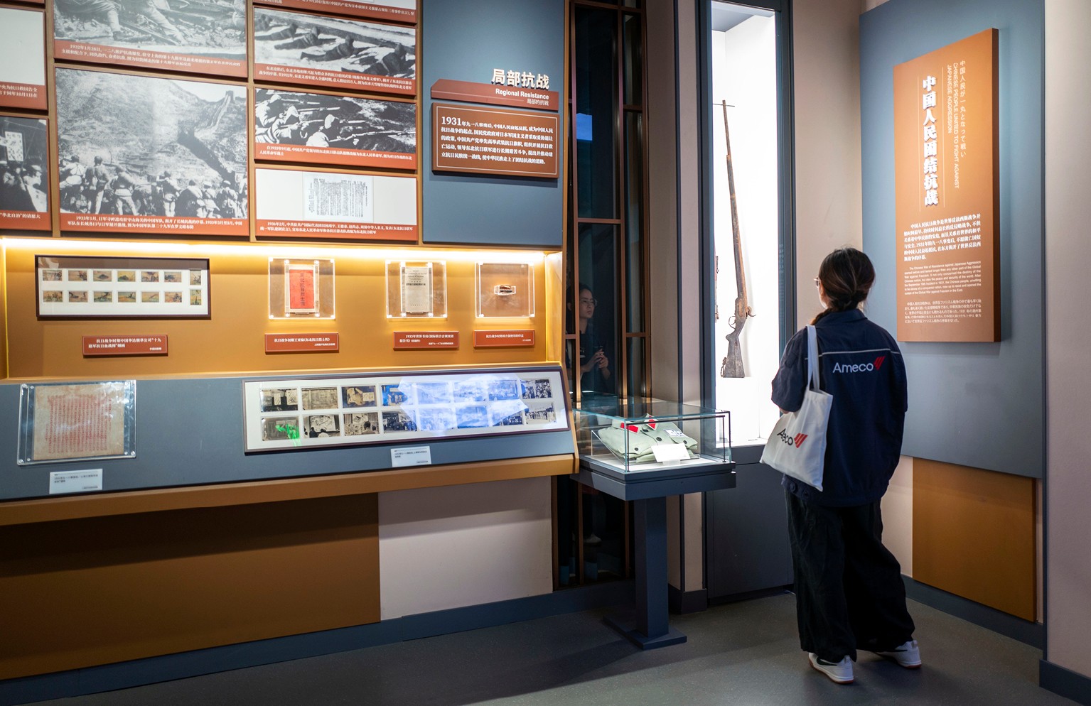 上图:2025年9月19日,上海淞沪抗战纪念馆,观众参观《正义昭昭 大道同行——战后审判与世界和平主题展览》。