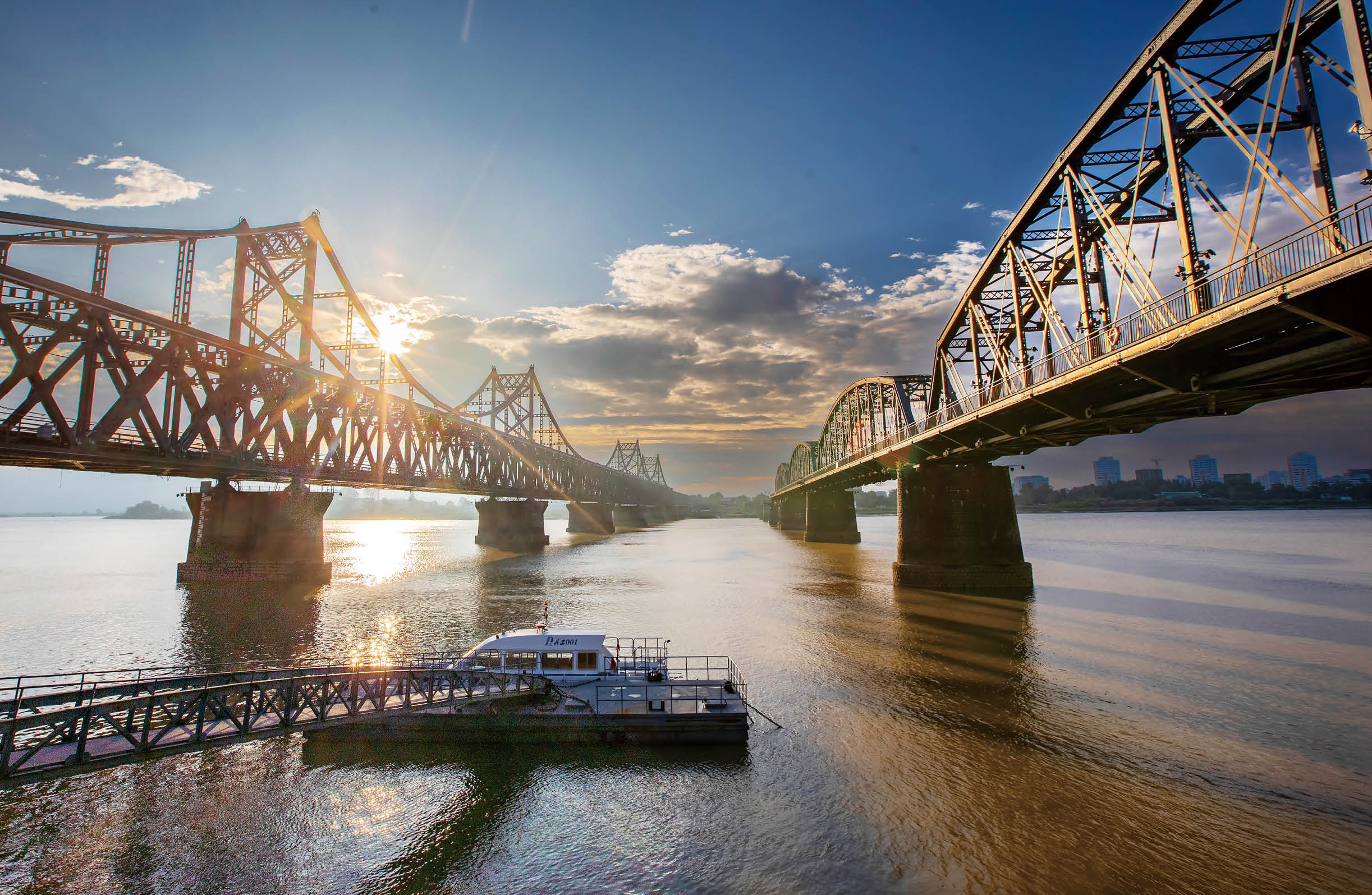 上图:2024年9月30日,辽宁丹东鸭绿江中朝友谊桥风光。