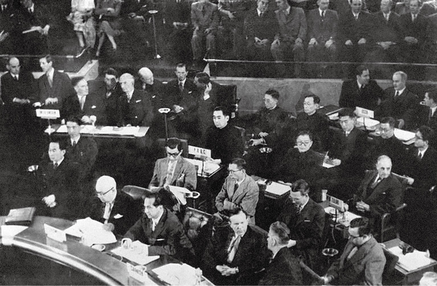 上图:1954年4月26日到7月21日,讨论和平解决朝鲜问题和恢复印度支那和平问题的国际会议在日内瓦举行。中国政府总理兼外长周恩来(正数第三排右三)出席了会议。