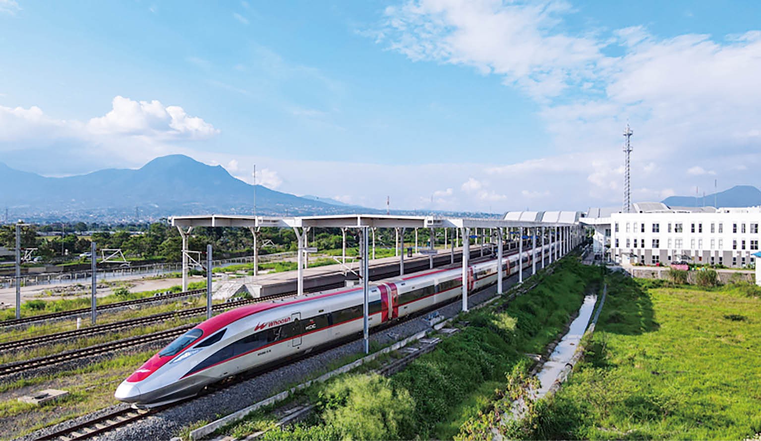 上图:5月20日,在印度尼西亚万隆,一列雅万高铁高速动车组列车驶出德卡鲁尔站(无人机照片)。 印度尼西亚雅万高铁是中国和印尼共建“一带一路”合作旗舰项目,连接雅加达与万隆。万隆因1955年召开亚非会议而著名。