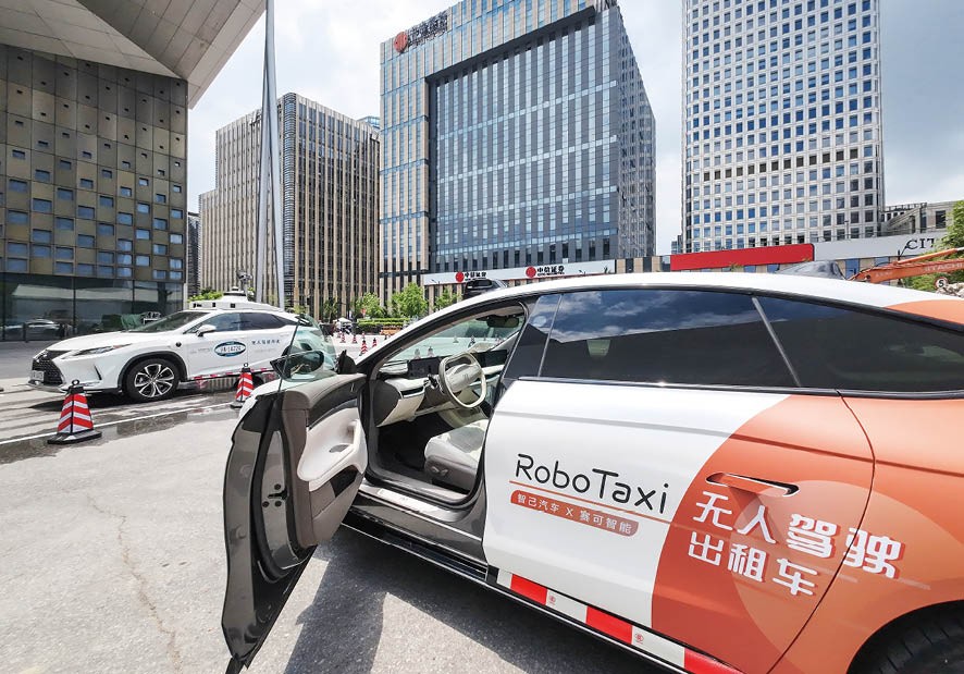 上图:在浦东试点的无驾驶人智能网联出租车。摄影/郑峰