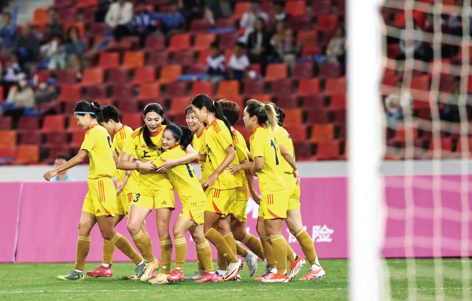 上图:2025年11月11日,上海女足球员在与北京队的比赛中庆祝进球。