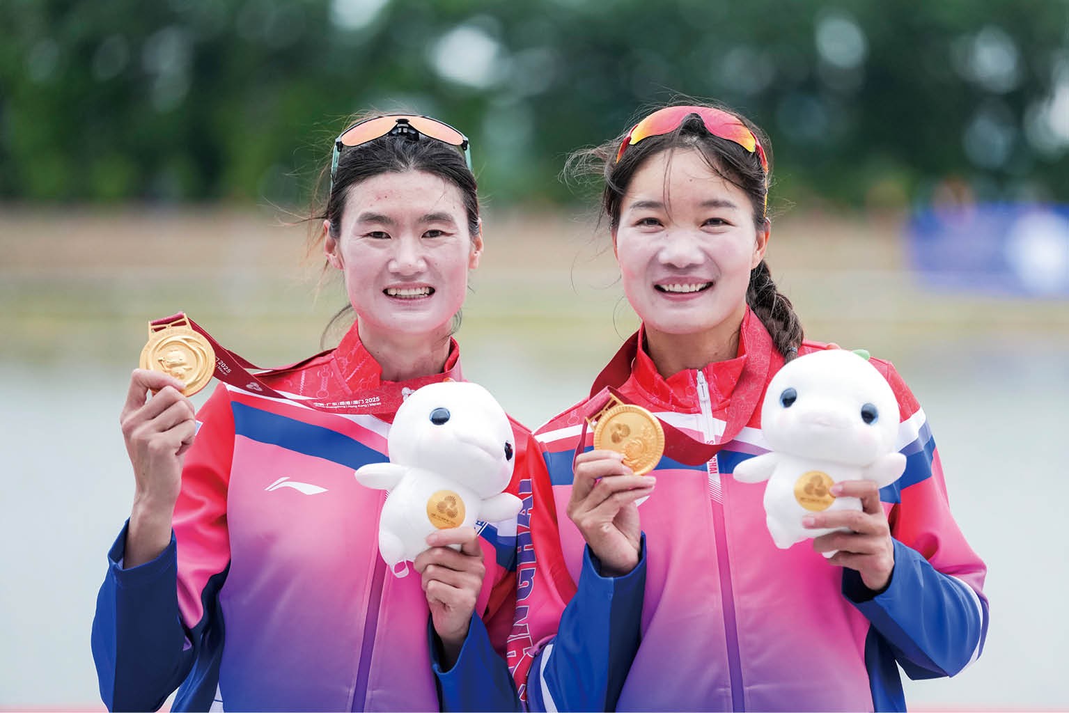上图:2025年11月11日,张灵(右)、陈云霞获得十五运会赛艇女子双人双桨金牌。摄影/李铭珅