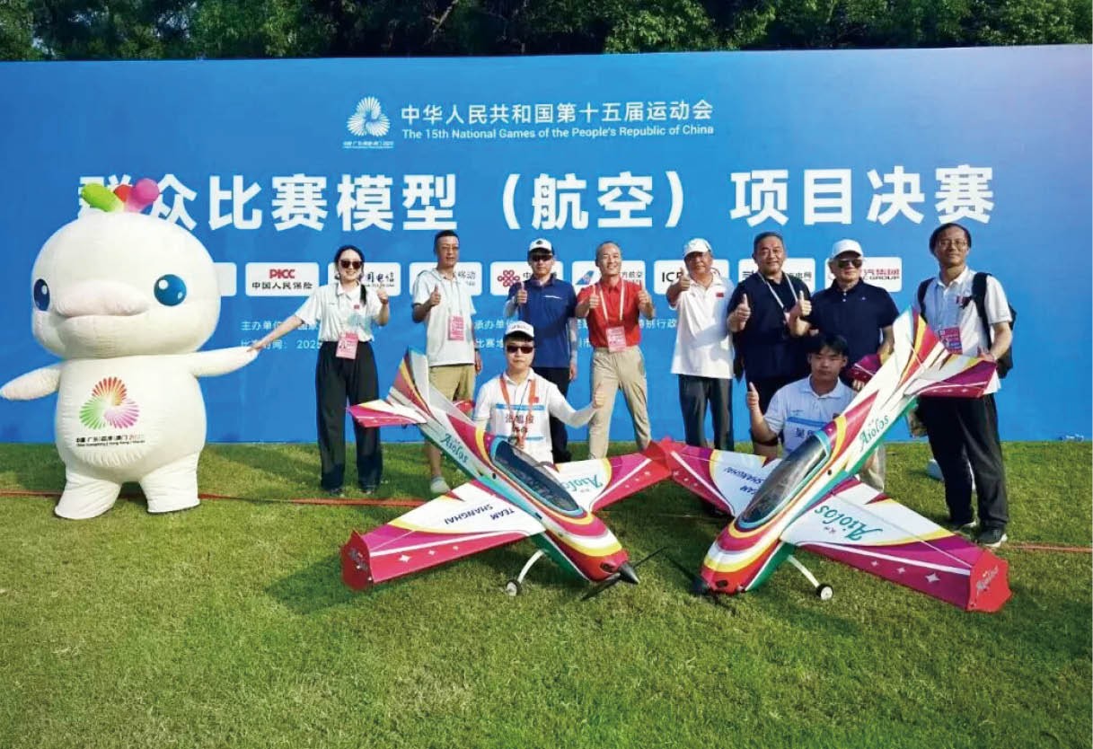 上图:十五运会群众比赛航空模型项目,上海队在汽油机模型绕标飞机(P3D)比赛中夺得一金一铜。