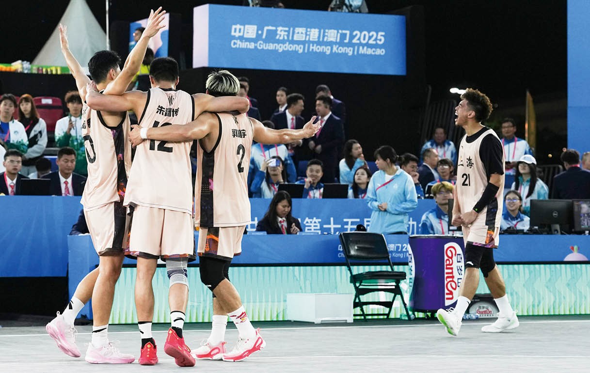 上图:2025年11月15日,在澳门永利皇宫南门户外草坪的十五运会三人篮球男子组决赛中,上海队20:18战胜山东队,夺得冠军。