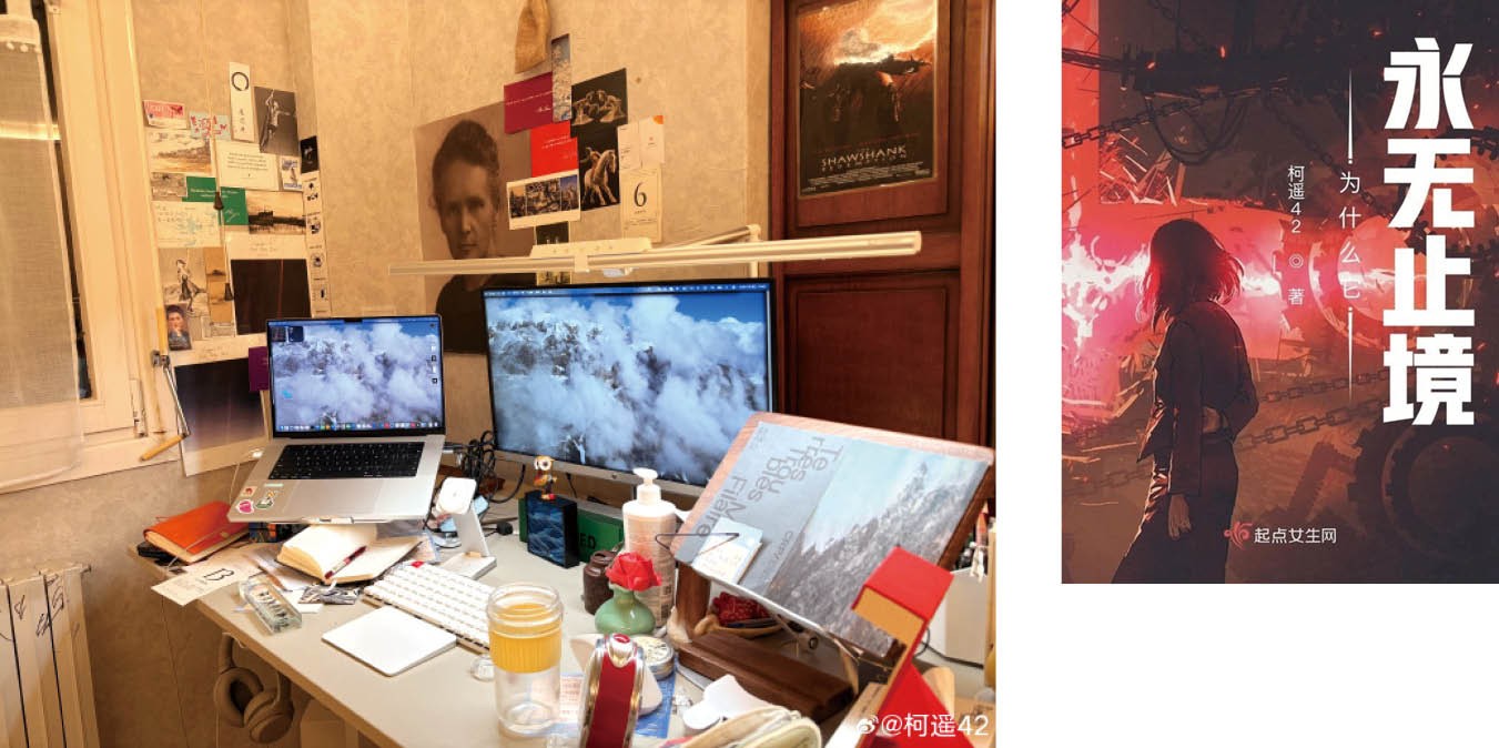 旅法网文作家“柯遥42”的创作轨迹则更加多元。从古代言情转向科幻写作,从心理学者到木匠,她的身份不断流动,创作也拒绝被简单归类。她的笔名中的“42”源自《银河系漫游指南》中“宇宙的终极答案”。一个充满哲学意味的玩笑。这种对意义与荒诞并置的敏感,贯穿了她的创作与生活。