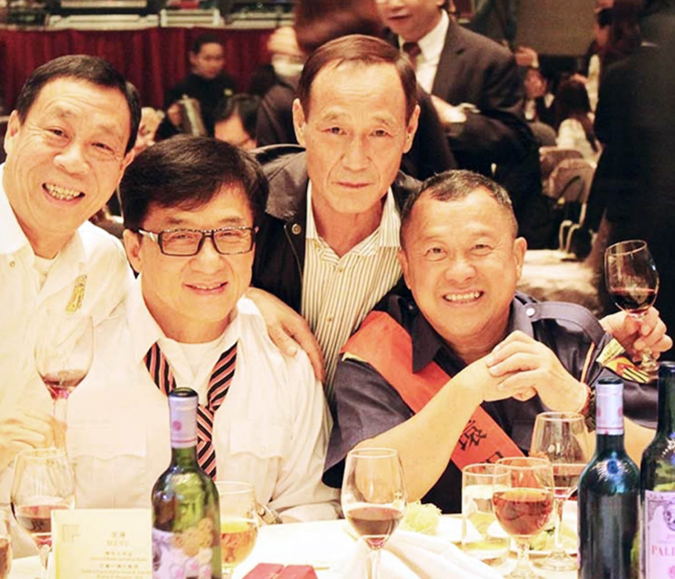 陈惠敏(后排右)与曾志伟(前排右)、成龙(前排左)。