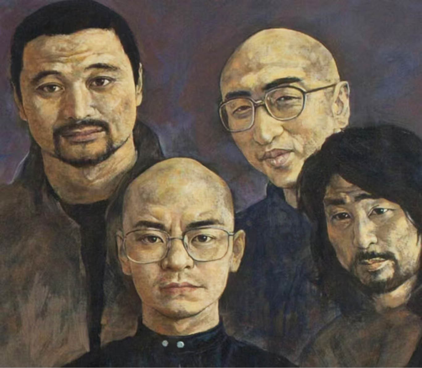 2004年马原和于小冬、牟森、扎西达娃(于小冬画)。